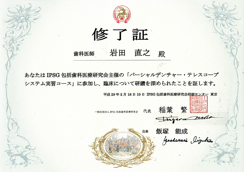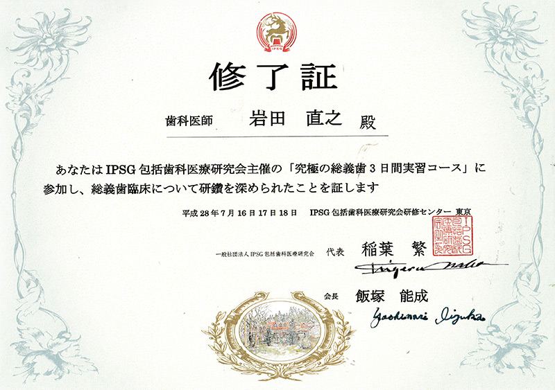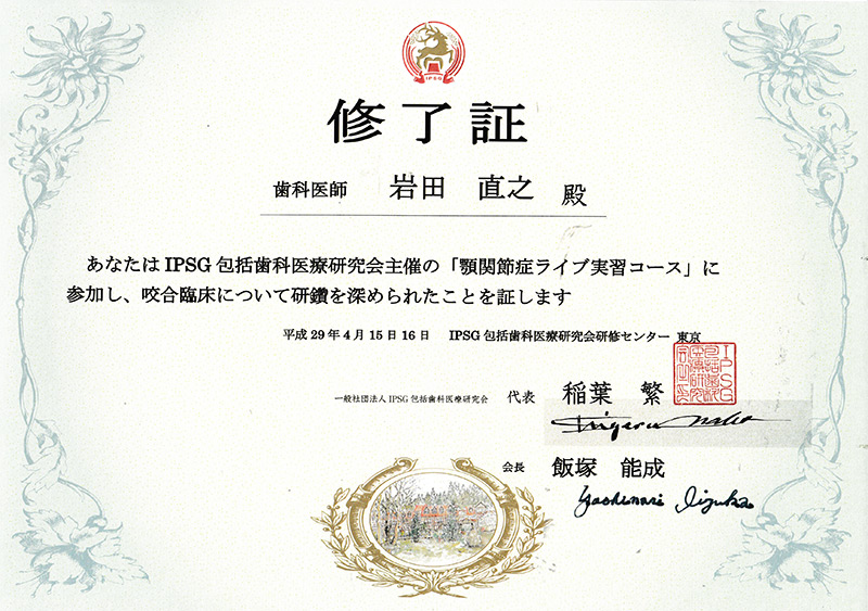 IPSG 咬合認定医コース 修了